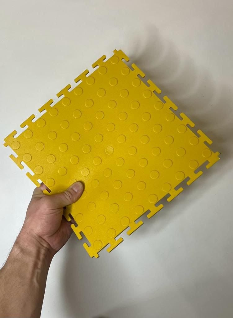 Модульное напольное покрытие разработано для быстрого и эффективного решения задачи по устройству надежного напольного покрытия для коммерческих и промышленных помещений с высокой степенью нагрузки. Модульные покрытия представляют собой плитки из прочного, химически инертного, устойчивого к маслам и бензину, негорючего ПВХ. Толщина модуля 6 мм в сочетании с высокой прочностью материала обеспечивают высокую надежность и износостойкость модульного покрытия. Модульное покрытие идеально для зон с высокой нагрузкой, таких как промышленные и складские помещения. Модульное напольное покрытие способно выдержать не только перемещения тележек и рохлей, но и движение тяжелых станков и грузов путем перекатывания на подкладных стальных вальцах, а также больших погрузчиков на шипованной резине.