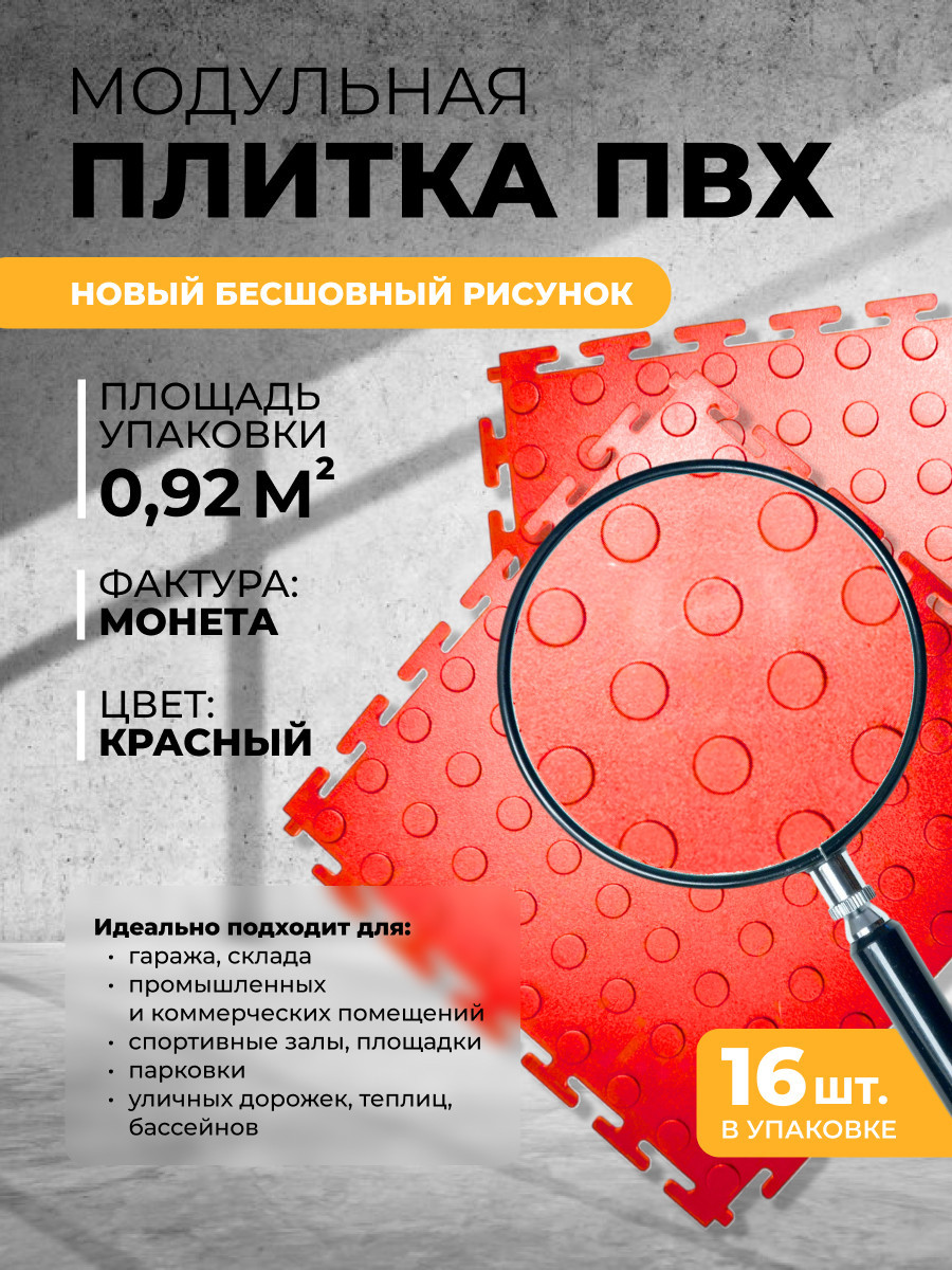 - Напольное покрытие ПВХ цвет красный (рисунок монета)